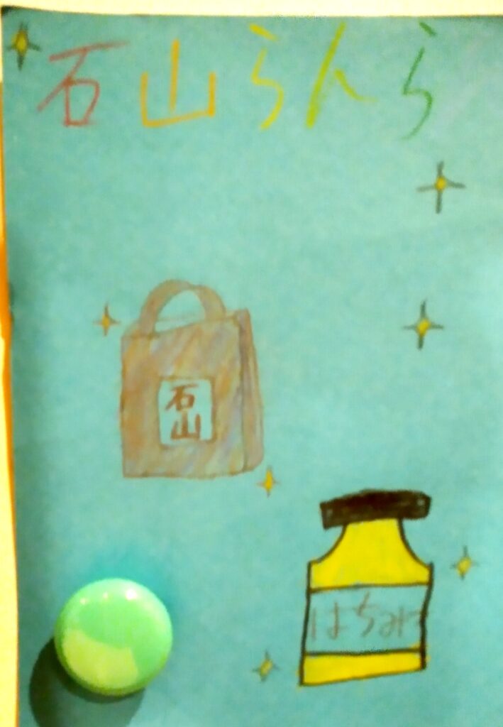 石山バッグの絵を描いてくれたのに、かくれてしまったので改めて写真を撮りました。